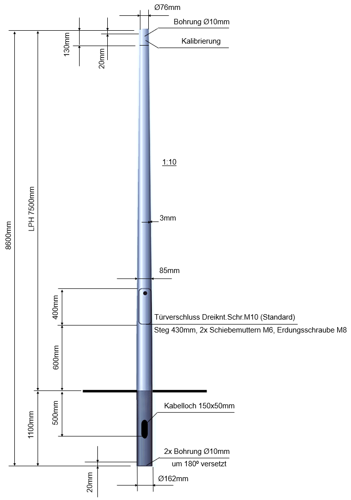 LPH=8,5m Lichtmast-Zopf Ø76mm