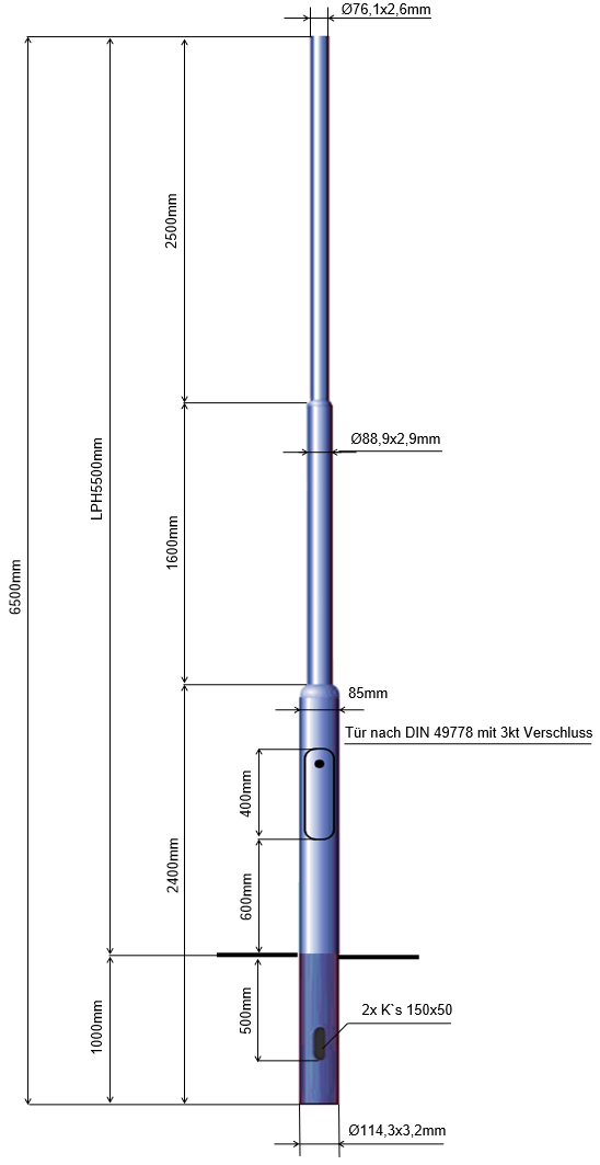 Zylindrisch abgesetzte Stahlmasten